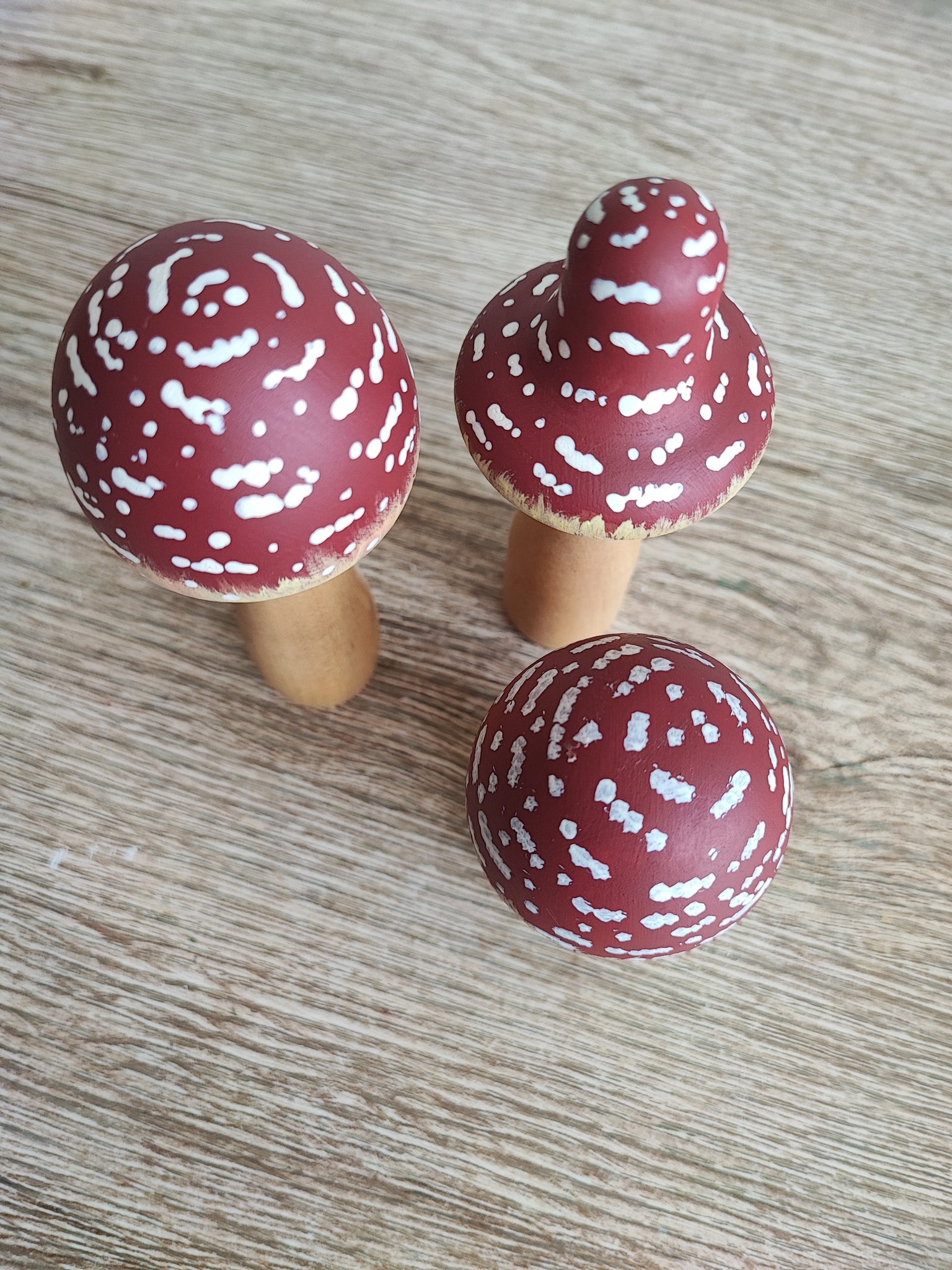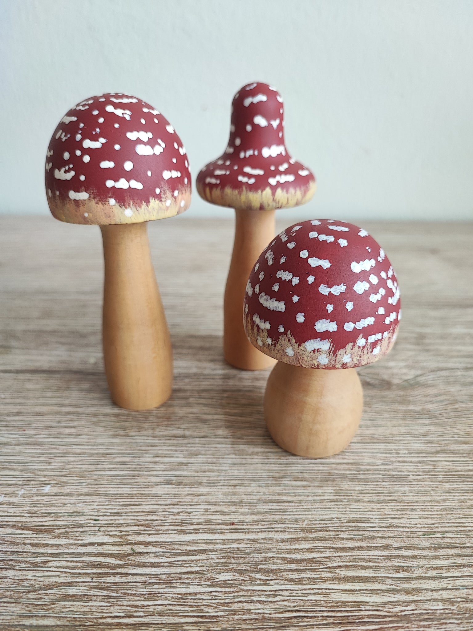 3 amanitas de madera tamaño maxi pintadas a mano